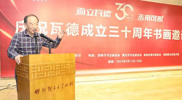 瓦德集團董事長謝富強向與會的各路藝術家及賓朋表達了熱情歡迎。向河北邯鄲、湖北黃石、安徽宣城三地文聯(lián)、書協(xié)、美協(xié)和書畫家們的大力支持表達了衷心感謝。尤其對中國知名書畫家,邯鄲市書協(xié)主席,文化名人,著名企業(yè)家韓玉臣先生對瓦德集團慶典活動的鼎力支持表達了深深的敬意和由衷地感謝。在三千年歷史的趙國都城邯鄲,能有瓦德集團如此注重文化藝術的實屬難得,能將深厚的中國文化的脈絡注入到自己的企業(yè)產(chǎn)品中非常難得。
